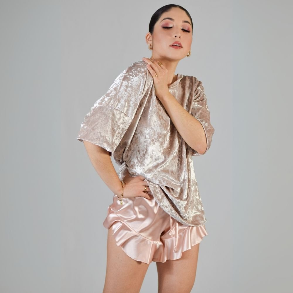 Shorts de Satín: Para noches más cálidas o momentos en los que buscas un toque de frescura. Con una longitud ideal, estos shorts brindan una sensación refrescante sin sacrificar el estilo y la elegancia.